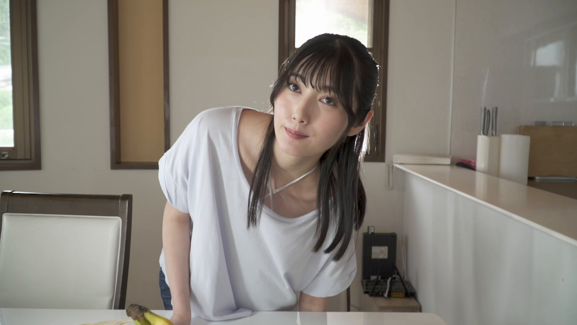 魔性系美女グラドル村雨芙美が、年下男子を翻弄する“巨乳妻”を熱演。